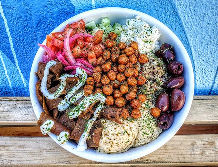 Spitz’s menu is built around wraps, salads, bowls, sandwiches, and baskets packed with fresh ingredients and delicious sauces like their signature tzatziki and garlic aioli. You can customize your meal by choosing from fresh proteins, including beef and lamb, chicken, or falafel for a vegan option.